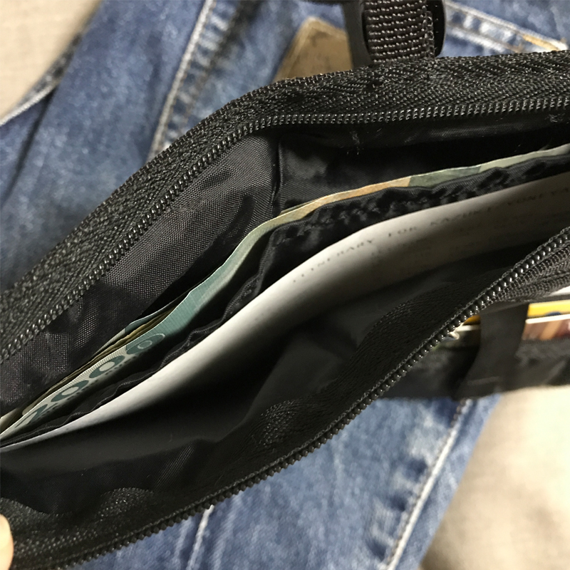 スマホも前面ポケットに入れて貴重品はひとつにまとめれるので、ホステルの共同シャワーを利用する時でも簡単に持ち運べます。