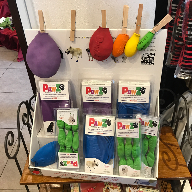 愛犬も愛用している足を保護するラバーブーツもあり、足が不自由なワンちゃんにも嬉しい品揃え。