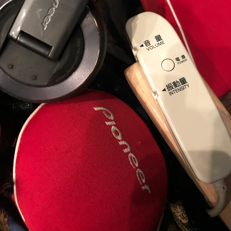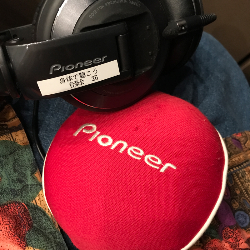 待ちに待ったライブ当日、指定された席へ行くとそこにはヘッドフォンとボディソニック(体感音響システム)という振動装置が組み込まれたポーチとサブトンクッションが用意されていました。