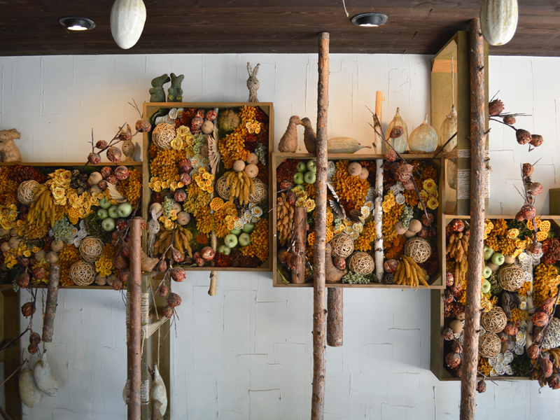 壁から天井までドライフラワーで飾り付けられていて、まるでジブリの物語に入り込んだかのような世界観。