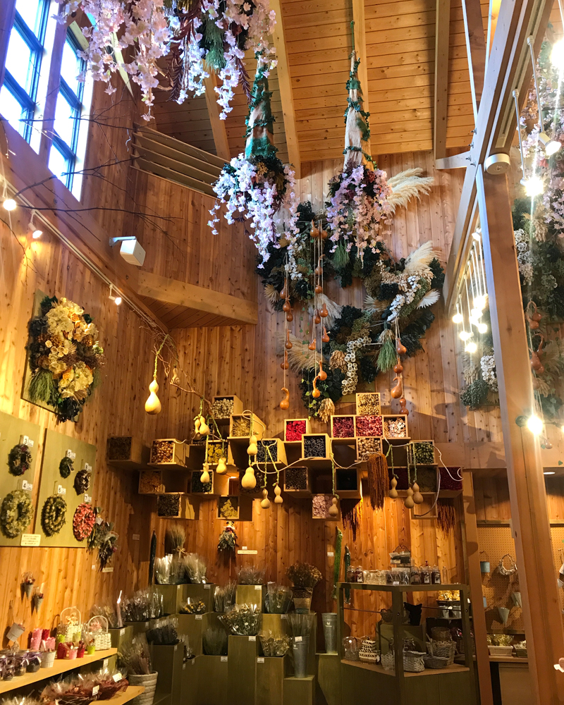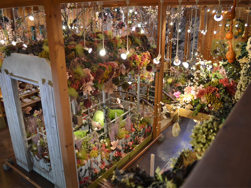 ドライフラワーの舎は日本最大の規模を誇るドライフラワーの展示スペースがあるショップ。