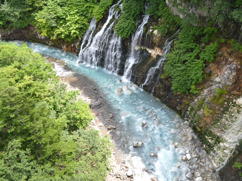 こちらも青い池と同じ成分が含まれていて、まるでサイダーのような爽やかな色合いの川でした。