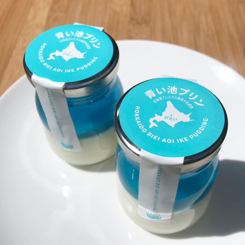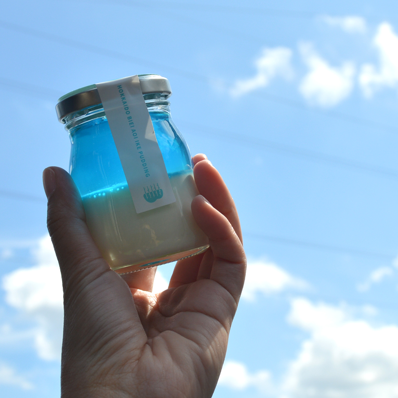 家族へのお土産は、美瑛牛乳が使用された青い池プリンをセレクト。