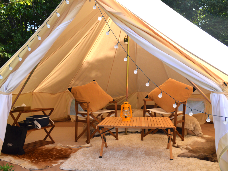 今人気の新しいアウトドアスタイル、グランピングはテントの設営がなく最初から揃えられた設備が魅力。
