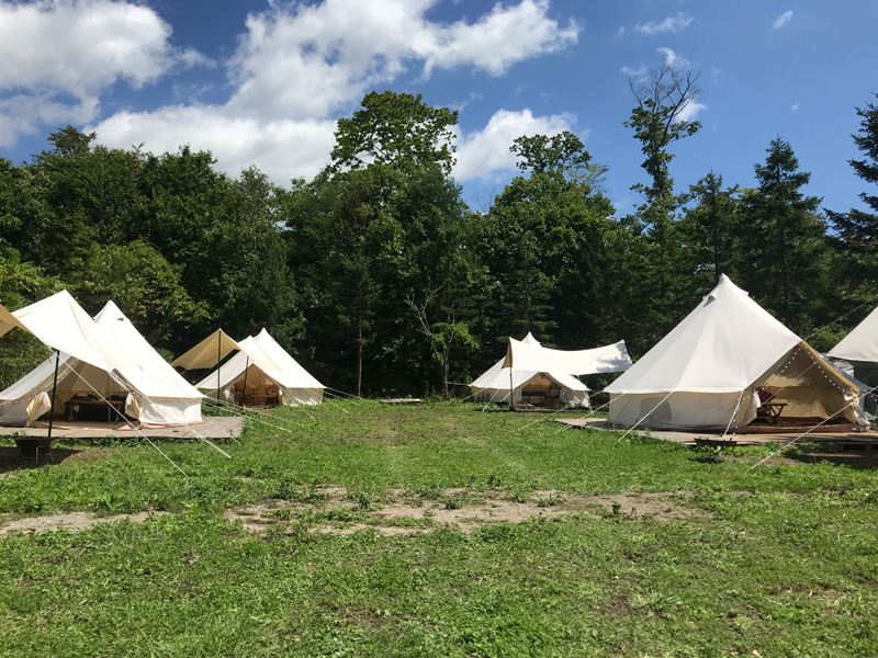 BEYOND VILLAGEには通常のキャンプサイトをメインに、4つのテントを備えたグランピンングサイトがあります。