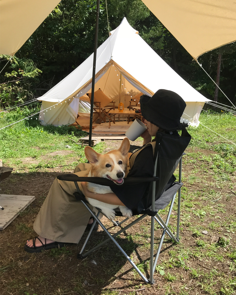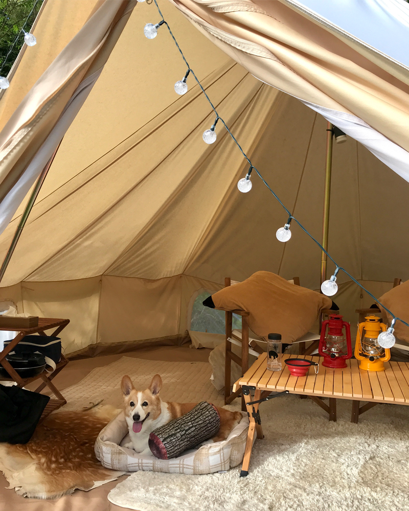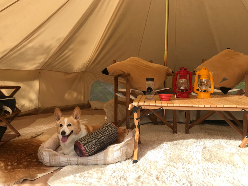 愛犬は去年から足が不自由になってしまい車椅子やドッグカートなど荷物が沢山だったので、今回はテントもギアも揃っているグランピングを利用しました。