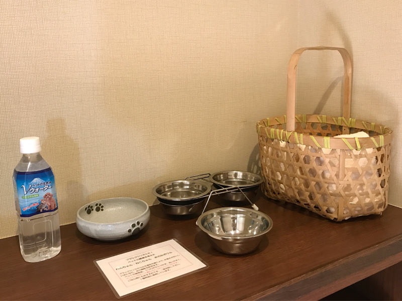 部屋には愛犬用のお手拭や水のみボウルも用意されていました。