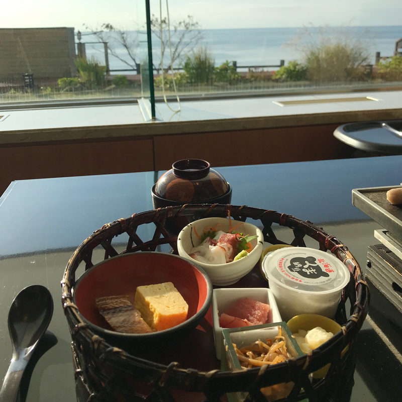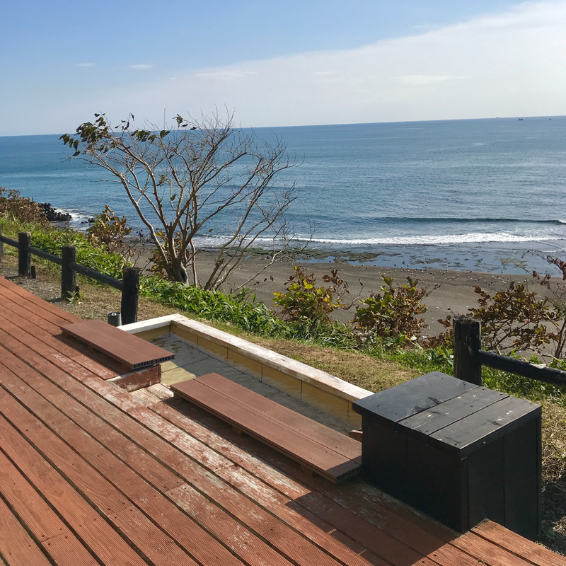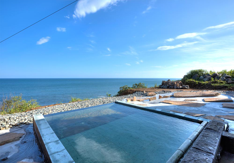 温泉も海と一体化したような、いわゆるインフィニティ温泉。目を閉じるとまるで波に揺られているような錯覚を覚えます。