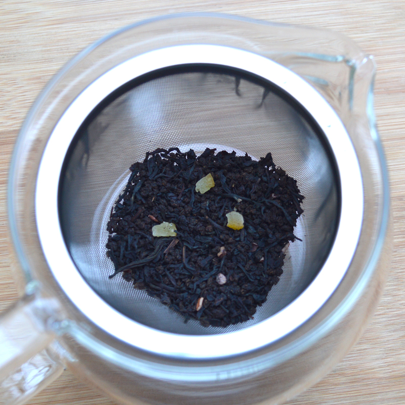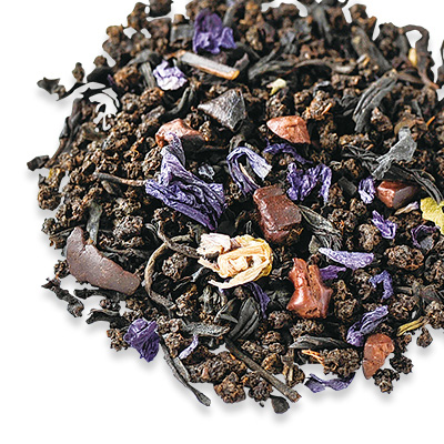 爽やかなオレンジと甘いチョコレートの香りが広がる紅茶。砂糖漬けされたオレンジピール入り