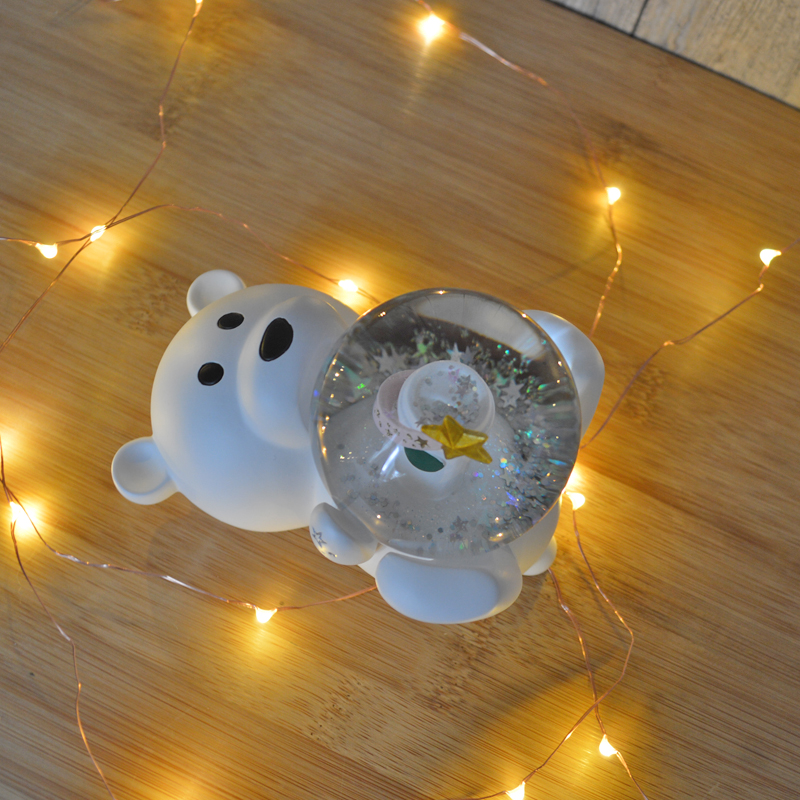 横たわったベアリスタがスノーグローブを抱えているデザインに一目惚れ。