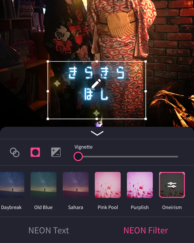 また、ネオンサインが映えるような画像フィルター機能も付いています。