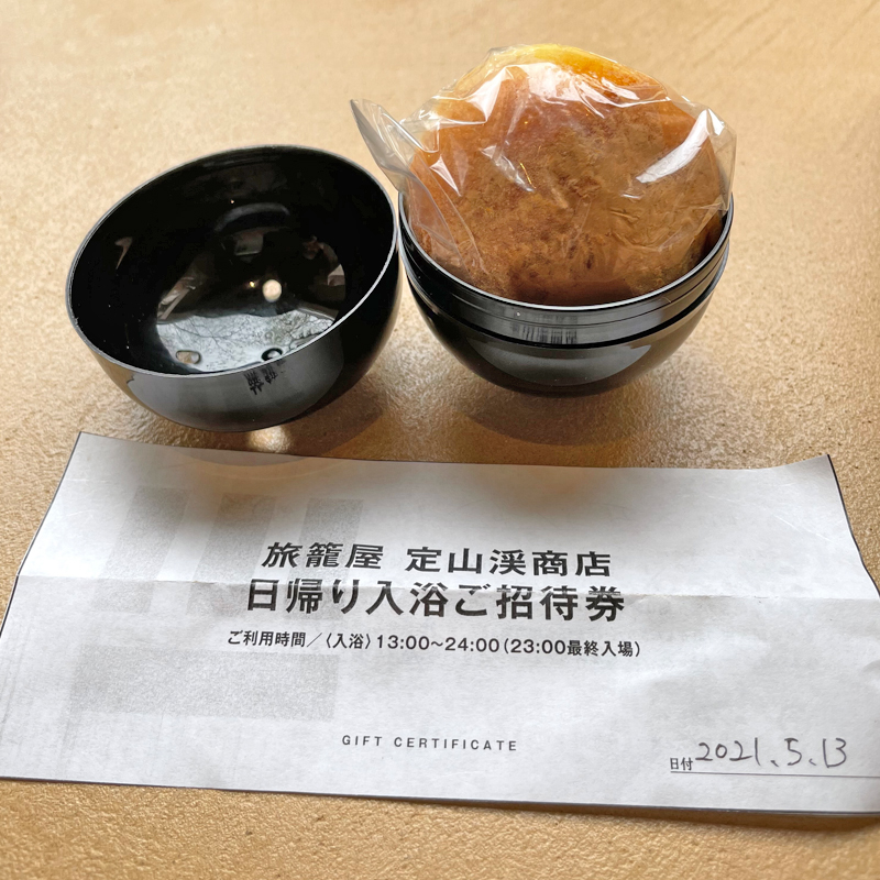 3,000円以上購入するとガチャガチャを引けるコインを貰えるそうで、開けてみると中身は丸いパンと日帰り温泉の入浴券が入っていました。