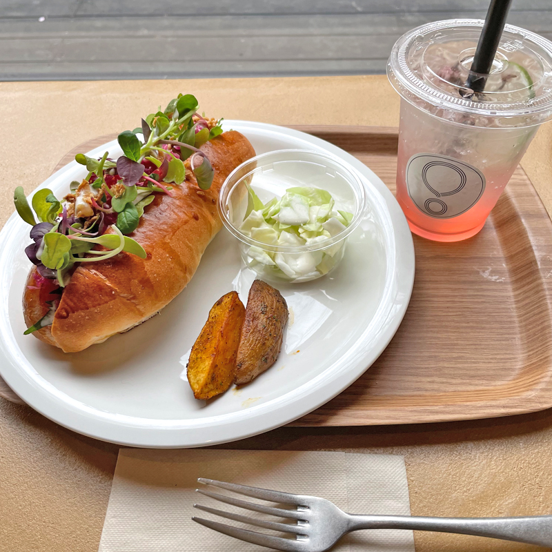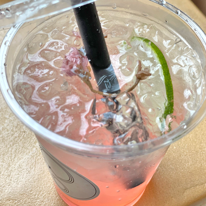 ランチの時間帯(11:30〜)にはハンバーガーやサンドイッチといったランチメニューもあり、ドリンクは季節限定の桜フレーバーの自家製ジンジャーエールを注文してみました。