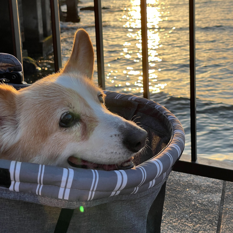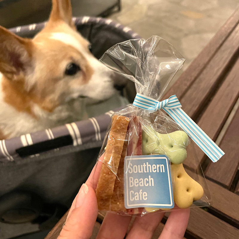 カフェの目の前にはサザンビーチが広がり、潮風がとても気持ち良く、愛犬と一緒にはるばる湘南まで来れた嬉しさを噛み締めていました。