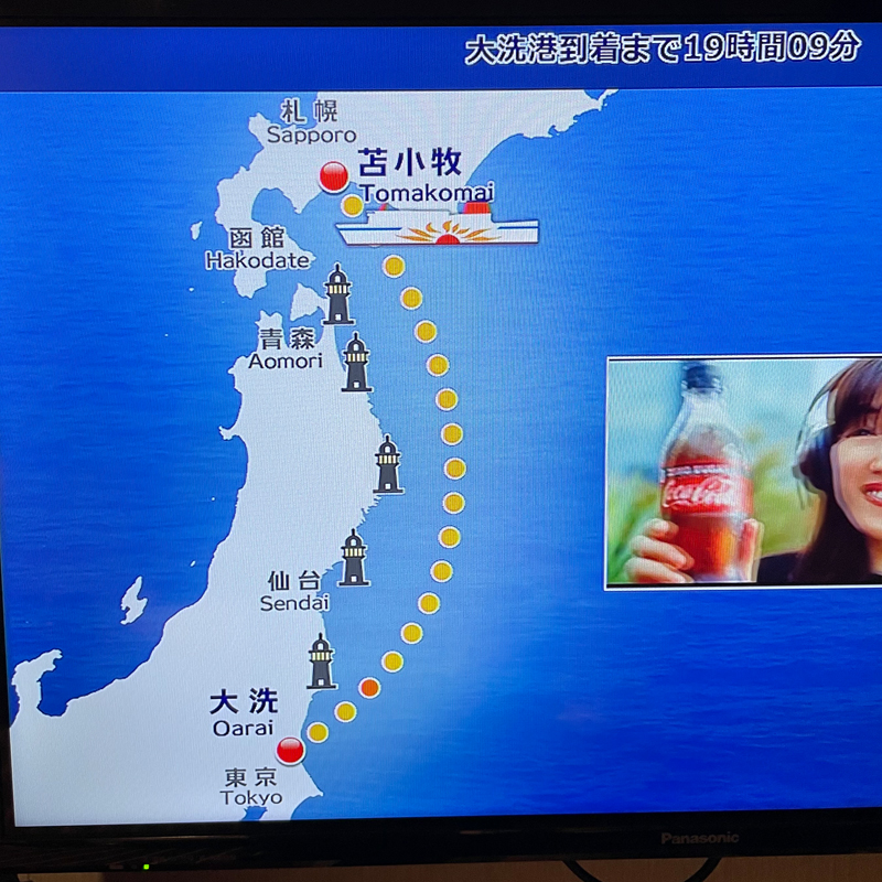 苫小牧港を18:45に出て大洗港に着くのは翌日の14:00と、移動時間19時間14分と長いのですが、ゆっくりと過ごせて快適でした。