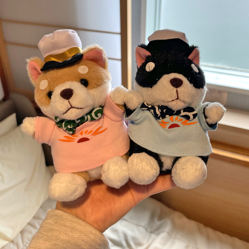 芝犬が着ているTシャツには、今回乗ったフェリーのロゴがプリントされていて良い思い出の品になりそう。