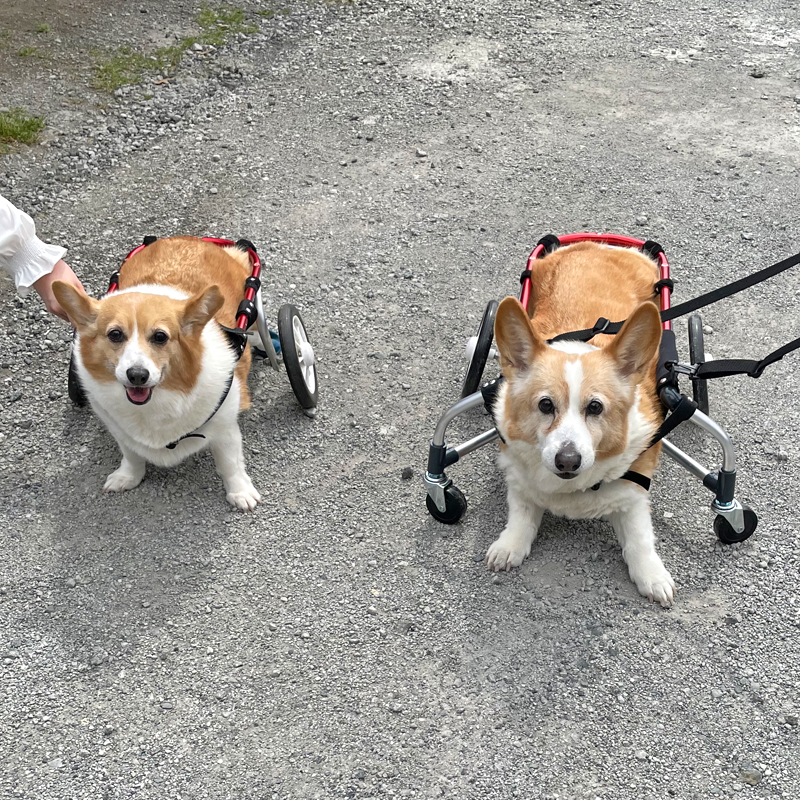 昨日うちのコーギーもポチの車いすが届いたところです。
