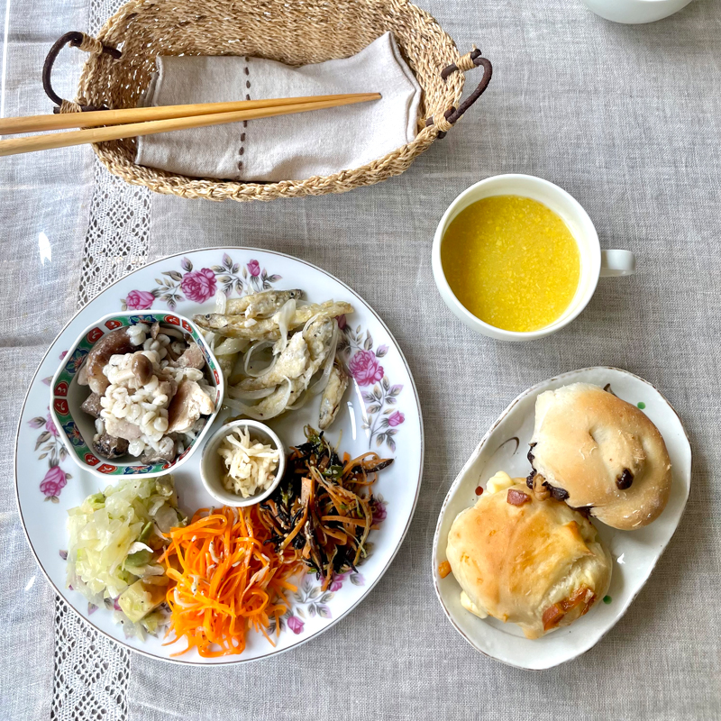 少しずつ色々なお惣菜が楽しめるのが嬉しいプレートには、北海道産のお魚や、地元で採れた野菜たち。