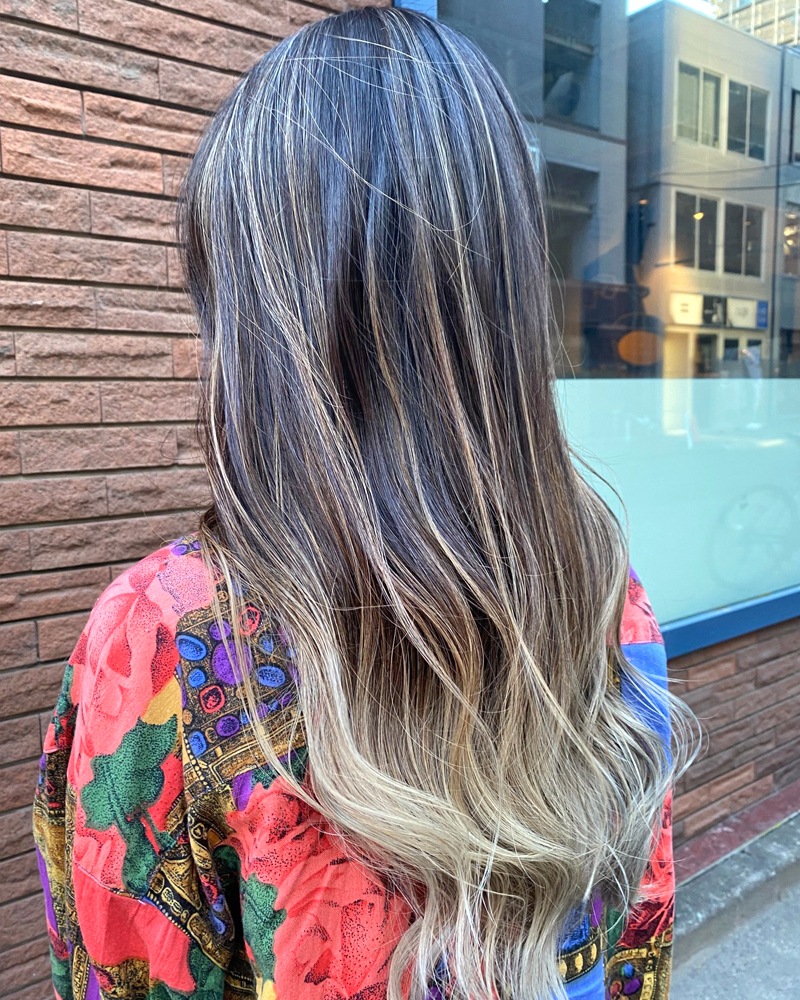 細かなハイライトを毎回入れ続けてバレイヤージュを重ねていたのですが、3回目となる今回、やっと理想のバレイヤージュに近付いてきました。