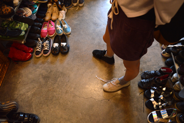 スニーカーやシューズも沢山積み重なっていて