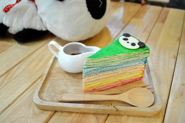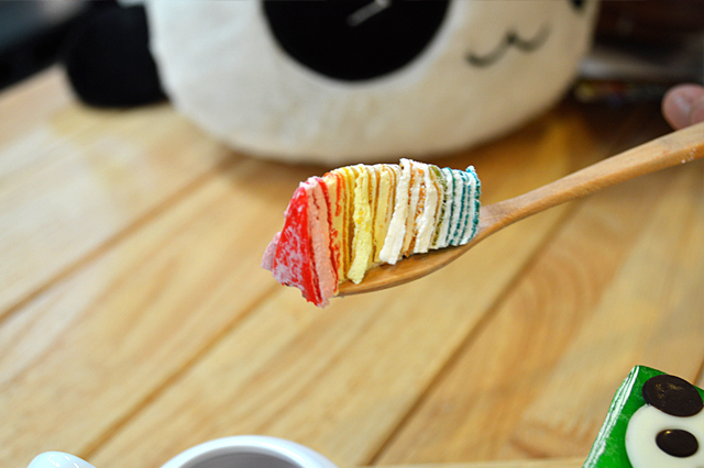 歩き続ける中で出会ったカラフルなミル・クレープのパンダケーキ。