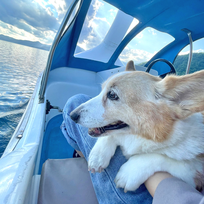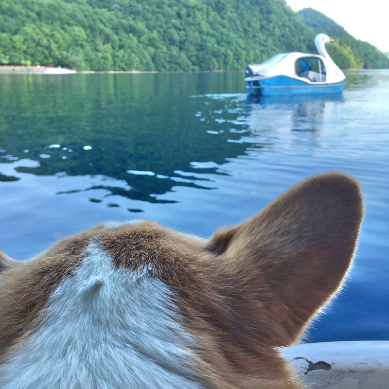 14歳半になる愛犬にとっては生まれてはじめてのスワンボート。