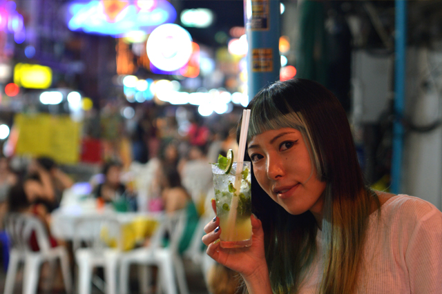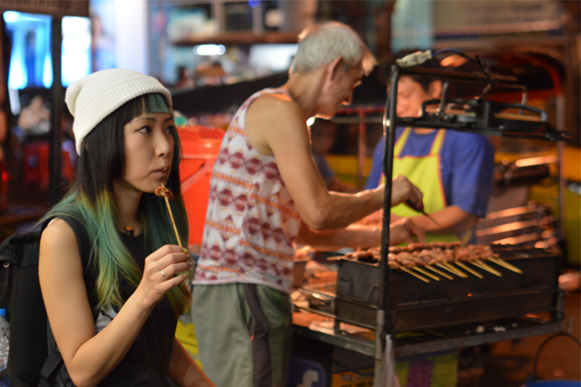 地べたに座って屋台の焼き鳥やアジアビールを味わったり