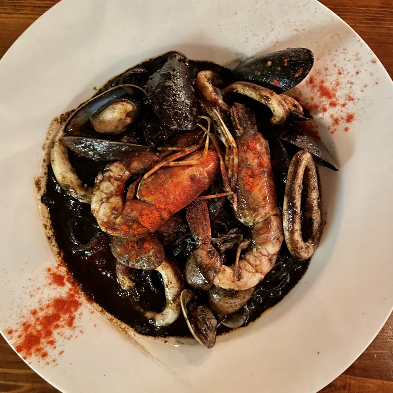 ここに載せているイカスミパスタだけではなく、イカスミのパエリアも最高に美味しかったです。