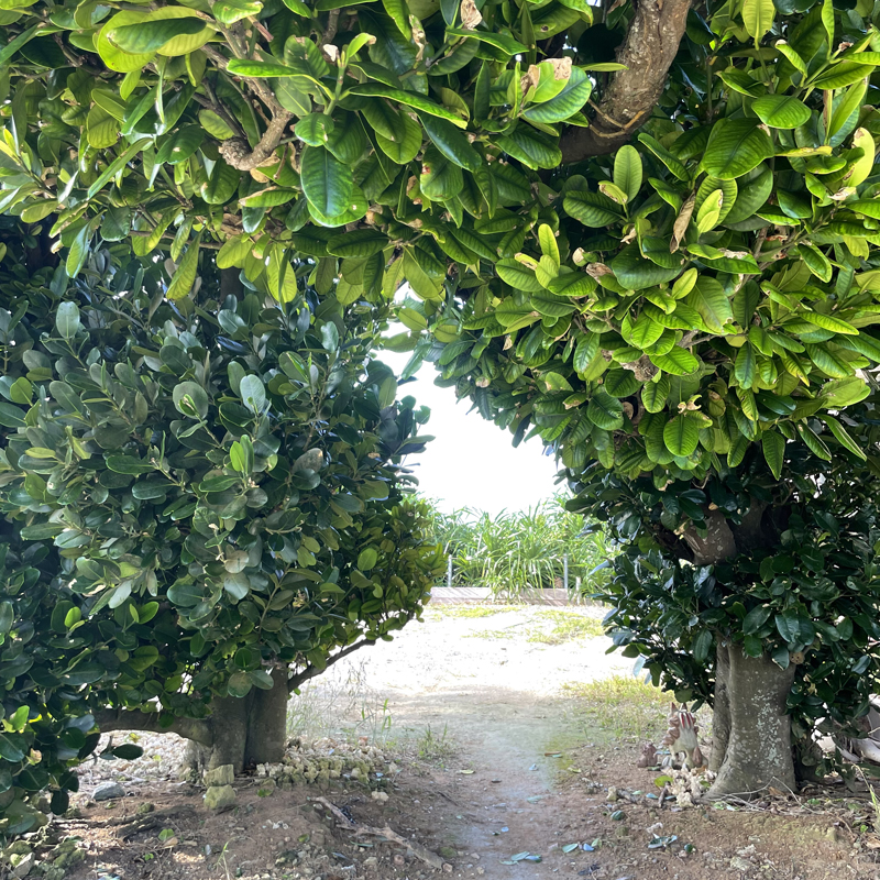 入口にある緑のトンネルをくぐった先に現れるOn the Beach CAFE(オンザビーチカフェ)