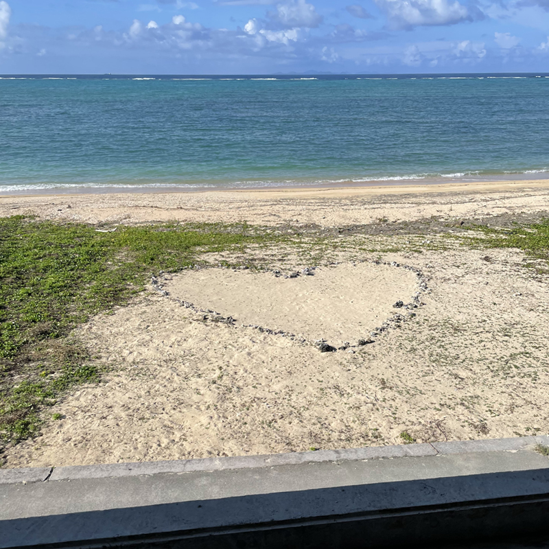 ビーチの方をよく見てみるとハートの形に並べられた石を見つけて、思わぬサプライズにほっこり。