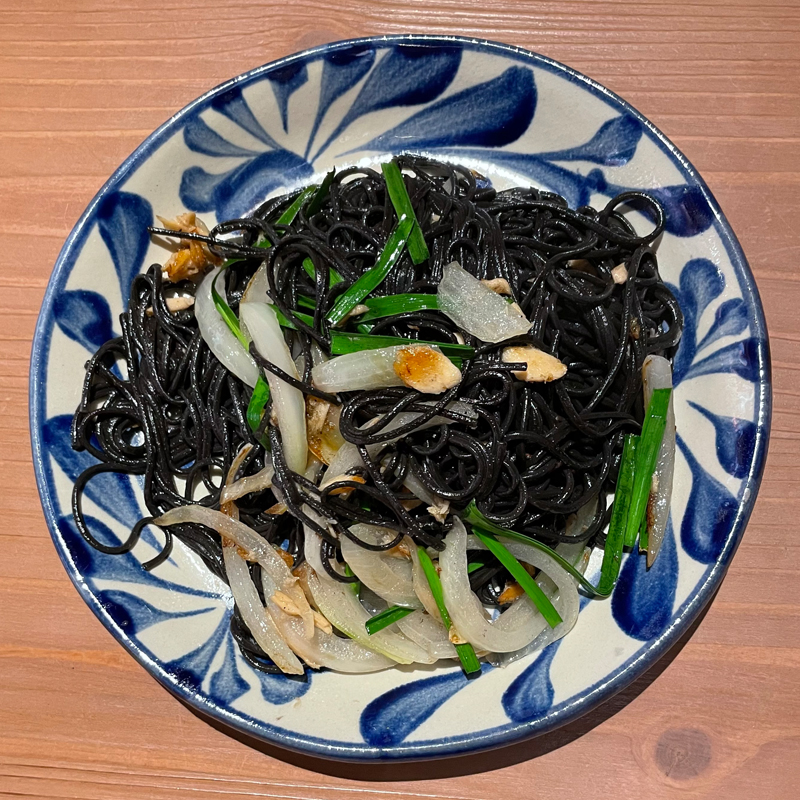 海ぶどうやゴーヤーチャンプルーといった定番料理も豊富に揃っているのですが、わたしが特に美味しかったのがイカ墨ソーメンチャンプルー