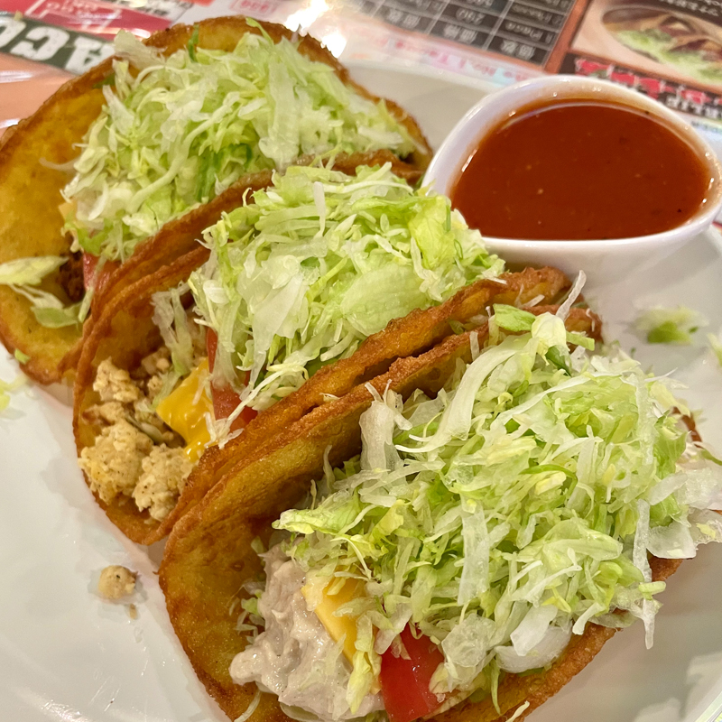 わたしはビーフ・チキン・ツナと3種類の味が楽しめるタコスを注文しました。
