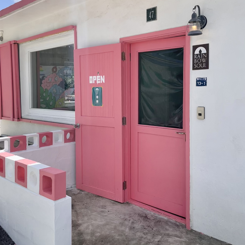 RAiNBOW SOUL OKiNAWA(レインボーソウル オキナワ)は店舗前にPOPなウォールアートがあるのですぐに見つけられるはず!