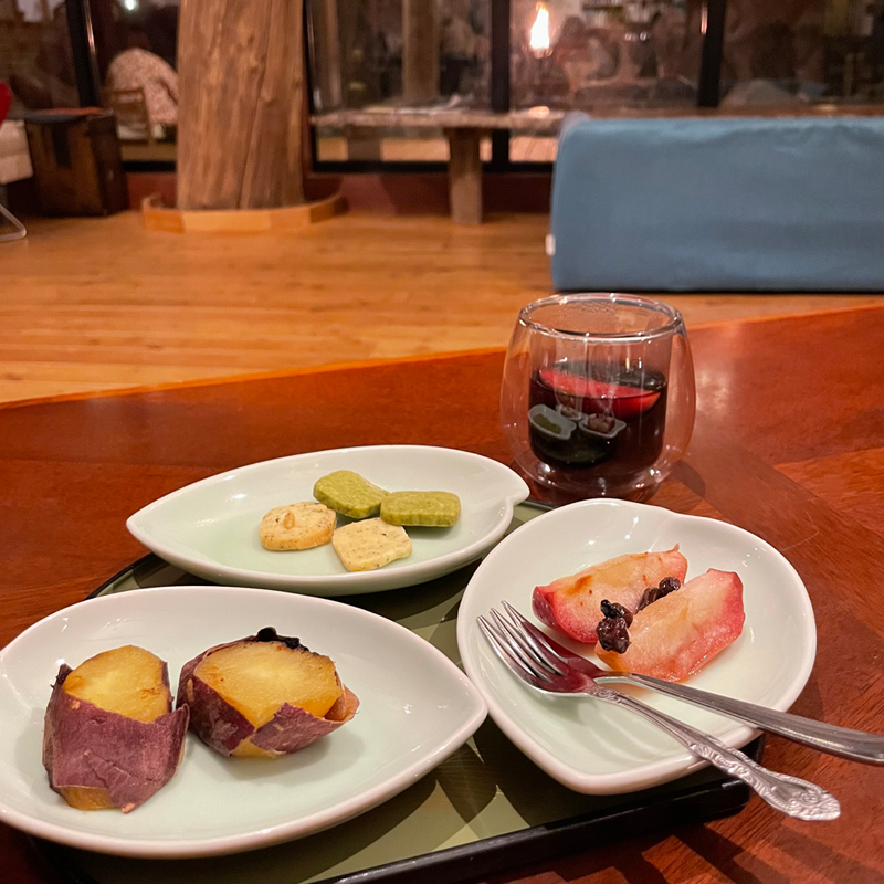 もちろん足湯でも、お茶菓子やドリンクを楽しむことが出来るのがうれしい。