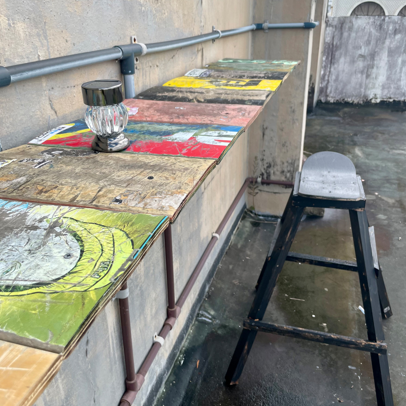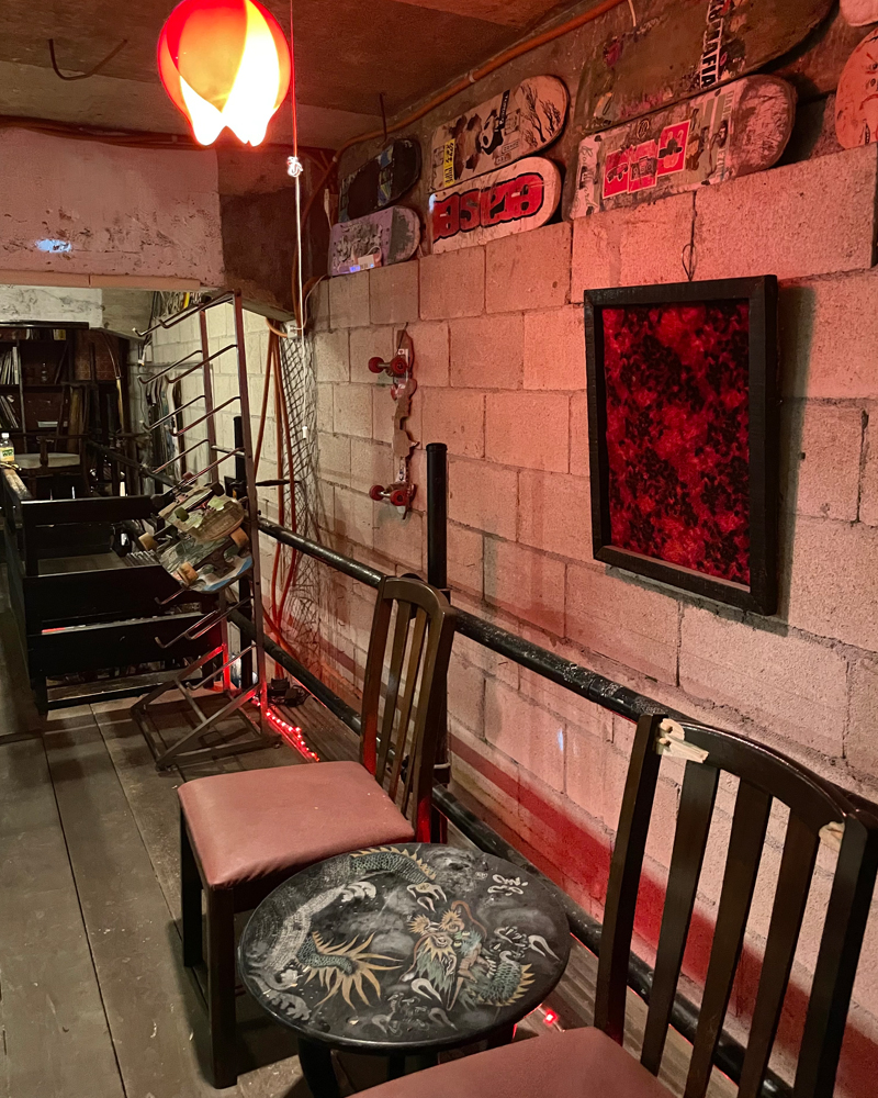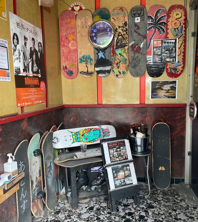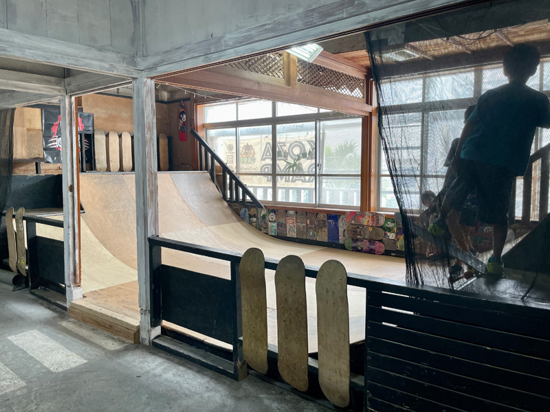 昼間は近所の子供たちの憩いの場所、夜はBARとしてローカルスケーターたちが集まるそう。