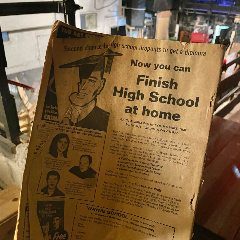 上の赤いのが本来の呼び込み看板で、下にある板は警察官が前を通ったときに看板を隠すのに使われていたんだって。