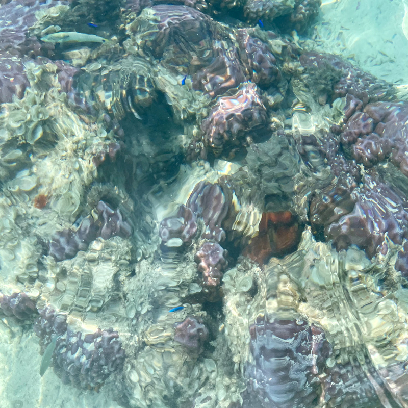 潜らなくても、サンゴ礁や色とりどりの魚たちが見えるぐらいの透明度の高さに感動しました。