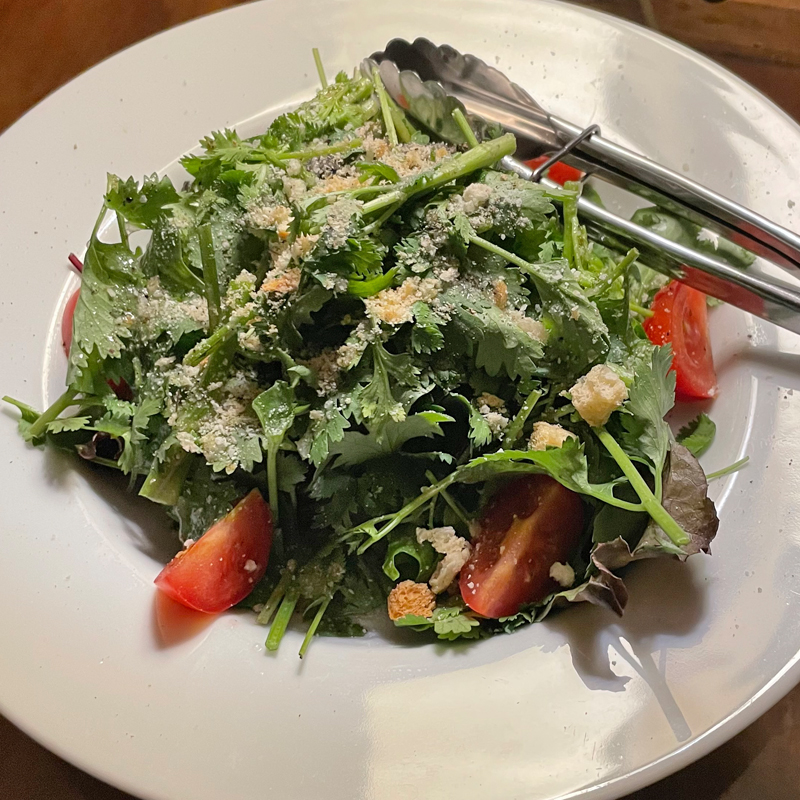パクチーメニューを注文すると、このようにたっぷりとパクチーが盛り付けられた料理が届きます。