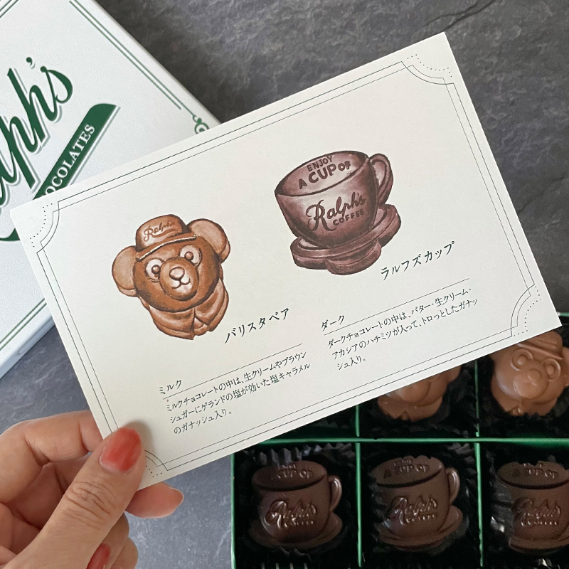 ラルフズカップを型取ったダークチョコレートの方は、バターやアカシアのハチミツ入りだそう。