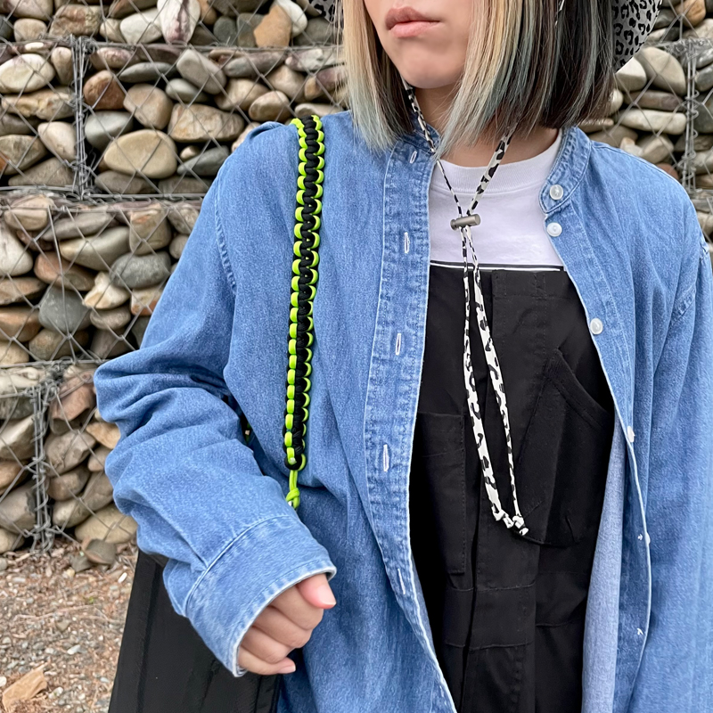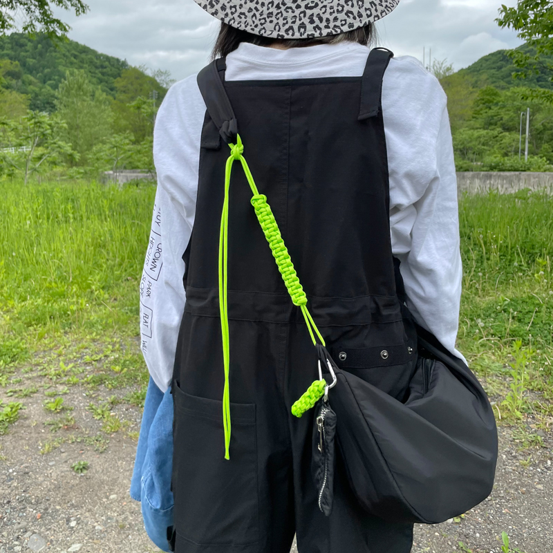 いつも使っているショルダーをパラコードに変えることによって、雰囲気が変わりコーデのアクセントになってくれます。