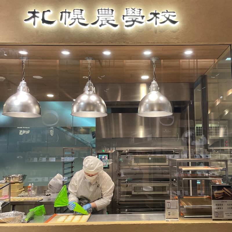 札幌駅直結の商業施設のひとつであるステラプレイスの1Fにある北海道四季マルシェというお土産屋さん。そこで札幌農学校の焼きたてクッキーサンドが買える場所があります。