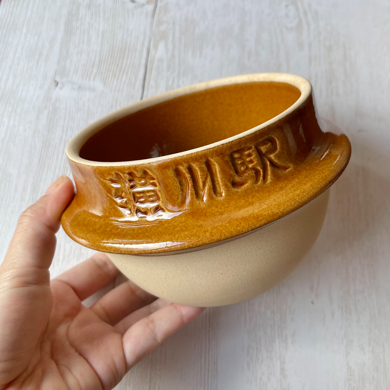 店頭で駅弁を受け取ったとき、ずっしりと重い土釜にびっくり!ご飯が炊けるとはこういうことだったのかと、わたしはやっと理解するのです。