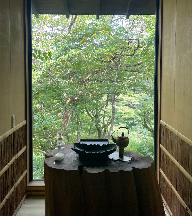目の前に広がる大きい窓から見渡せる景色も素敵だし、日本の和の美しさが詰まっていました。