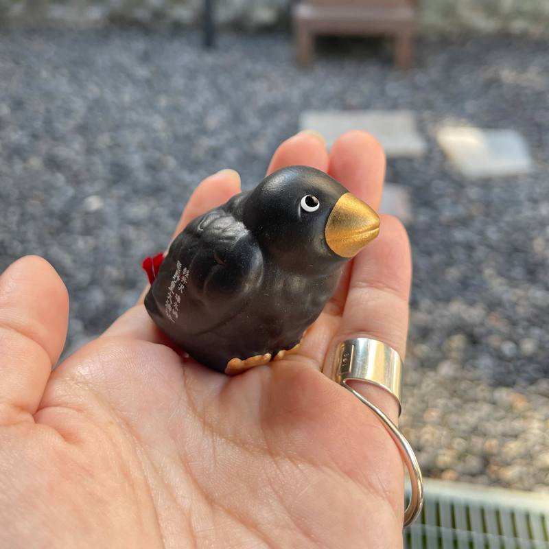 陶器で出来た八咫烏みくじを購入したのですが、ころんとしたフォルムでそのまま部屋にも飾れてかわいい…