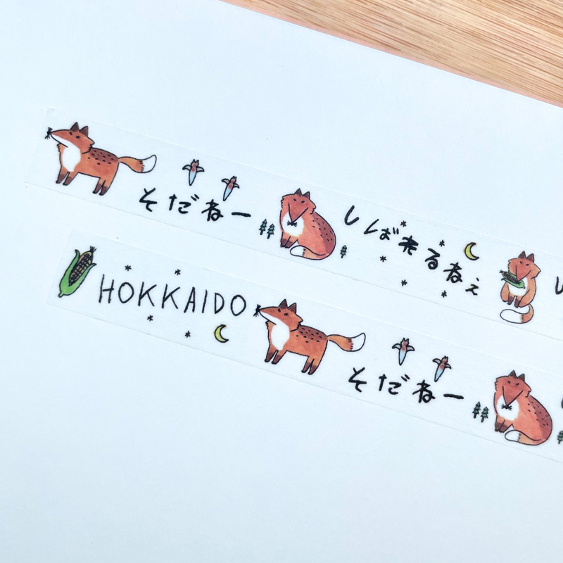 このゆるい感じのキタキツネがすっかり気に入ってしまい、北海道弁のキツネマスキングテープも合わせて一緒に購入しました。
