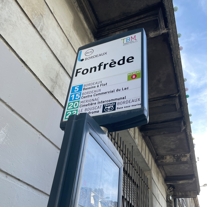 最寄りバス停であるFonfrèdeまでも徒歩約2分で、ボルドーのメイン駅であるボルドー・サンジャン駅への移動にも楽でした。