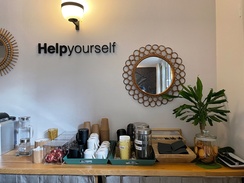 24時間いつでもコーヒー、紅茶が飲み放題!(クッキーも食べ放題)