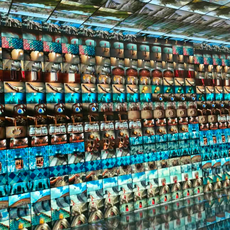 1,000枚以上のスクリーンを備えた最新の映像技術と回る通路の組み合わせで、仮想現実にいるかのような没入体験ができます。
