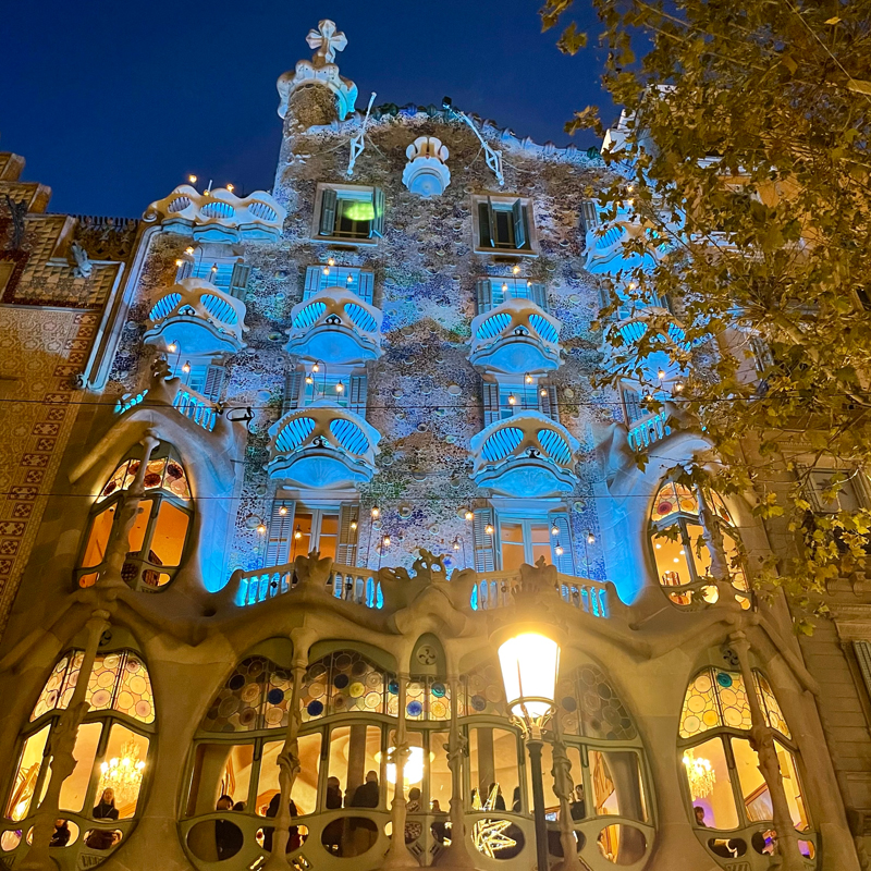 冬限定のライトアップで照らされたカサ・バトリョはとても煌びやかでした。