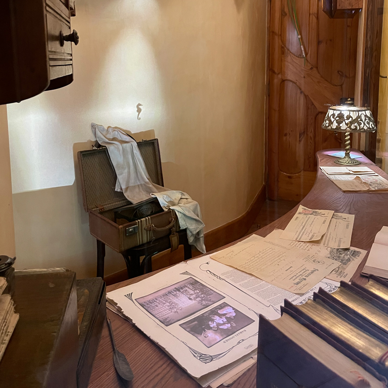 広げられた書類に壁にかけられたコート…完全に再現されたコンシェルジュルームは、まるで当時の時間がそのまま流れているかのよう。